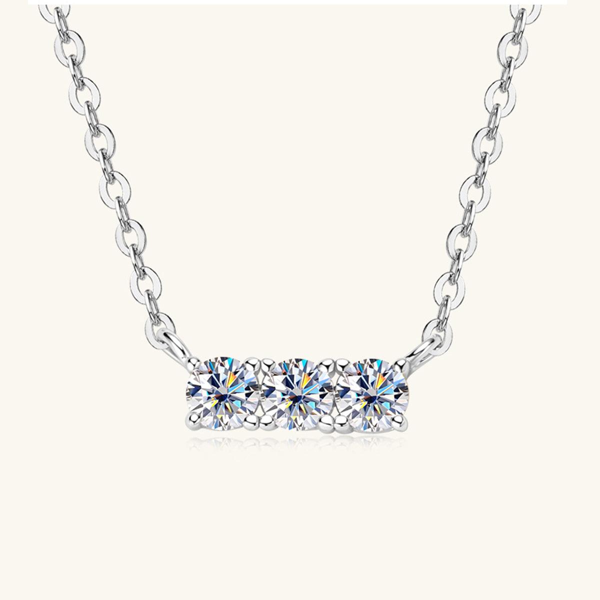 925 Sterling Silver Inlaid Moissanite Bar Necklace