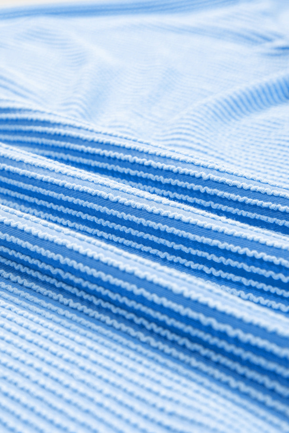 Light Blue Plus Size Ribbed Long Sleeve Top and Drawstring Shorts Set