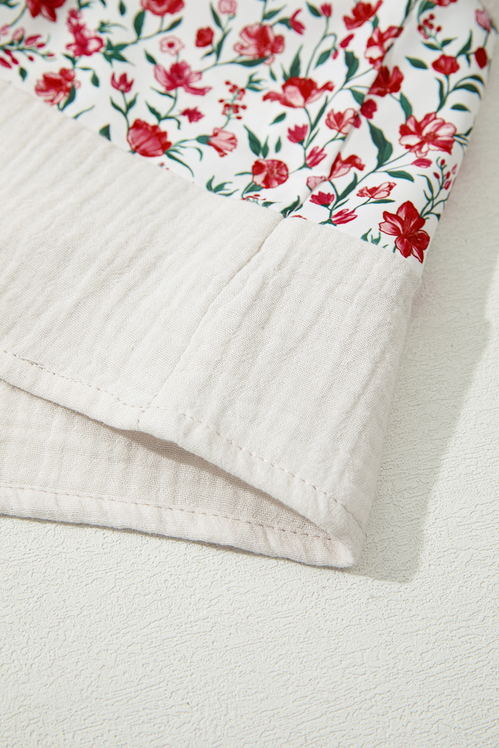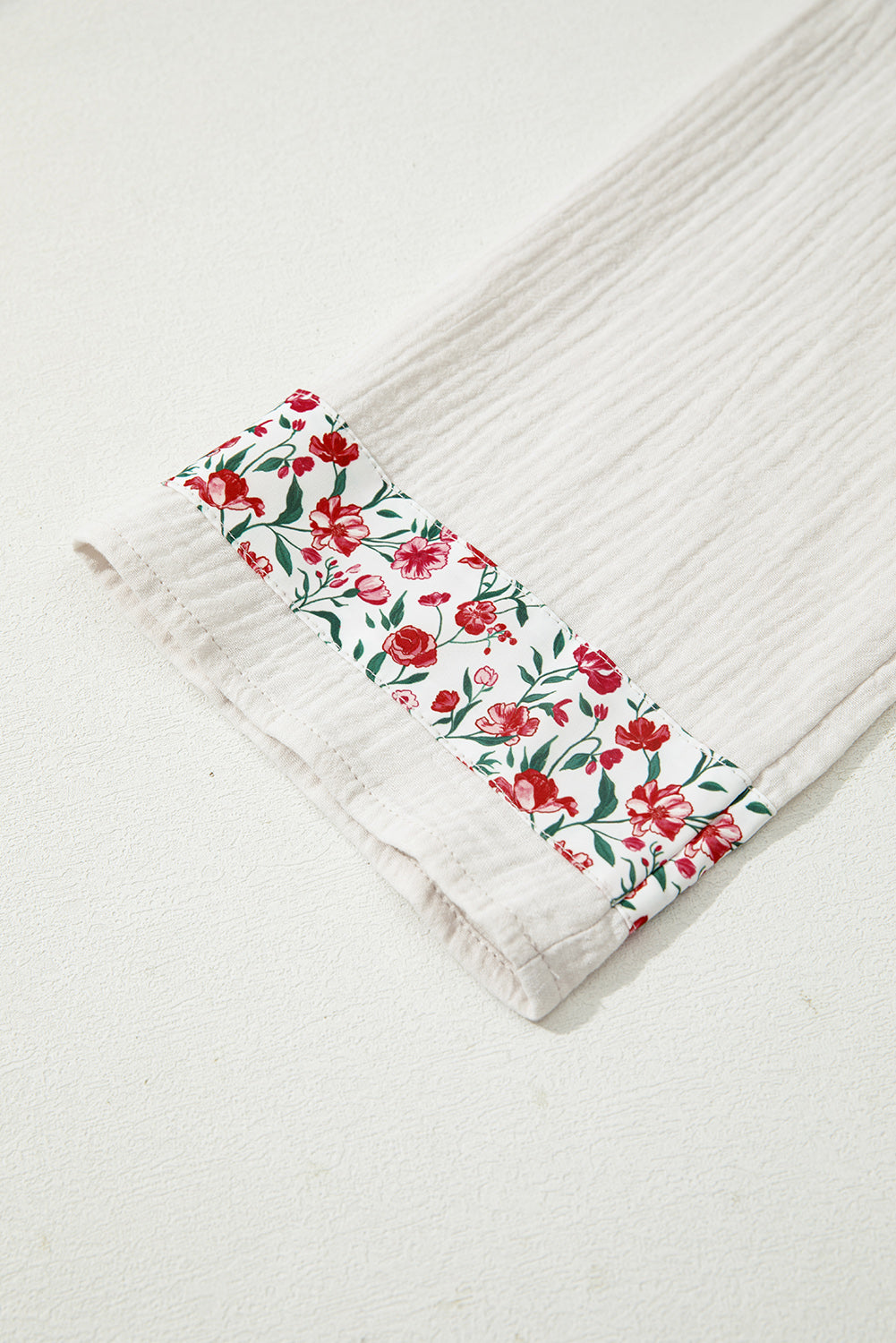 • Elegant floral print blends perfectly with breathable gauze patchwork.